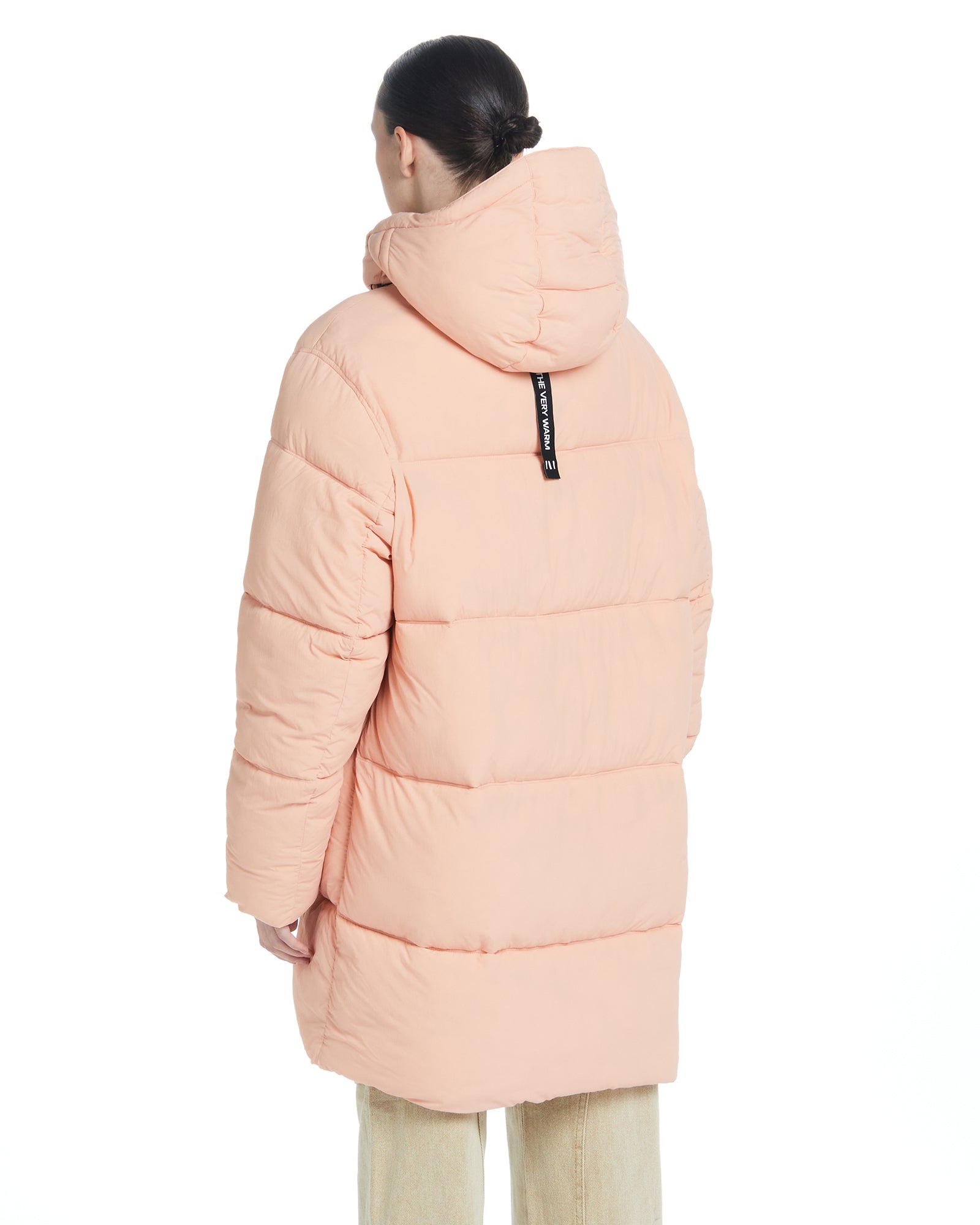 Our long hooded unisex puffer features a detachable hood, REPREVE® 500-equivalent recycled fill, interior pockets, and knit storm cuffs to keep you warm in any environment.