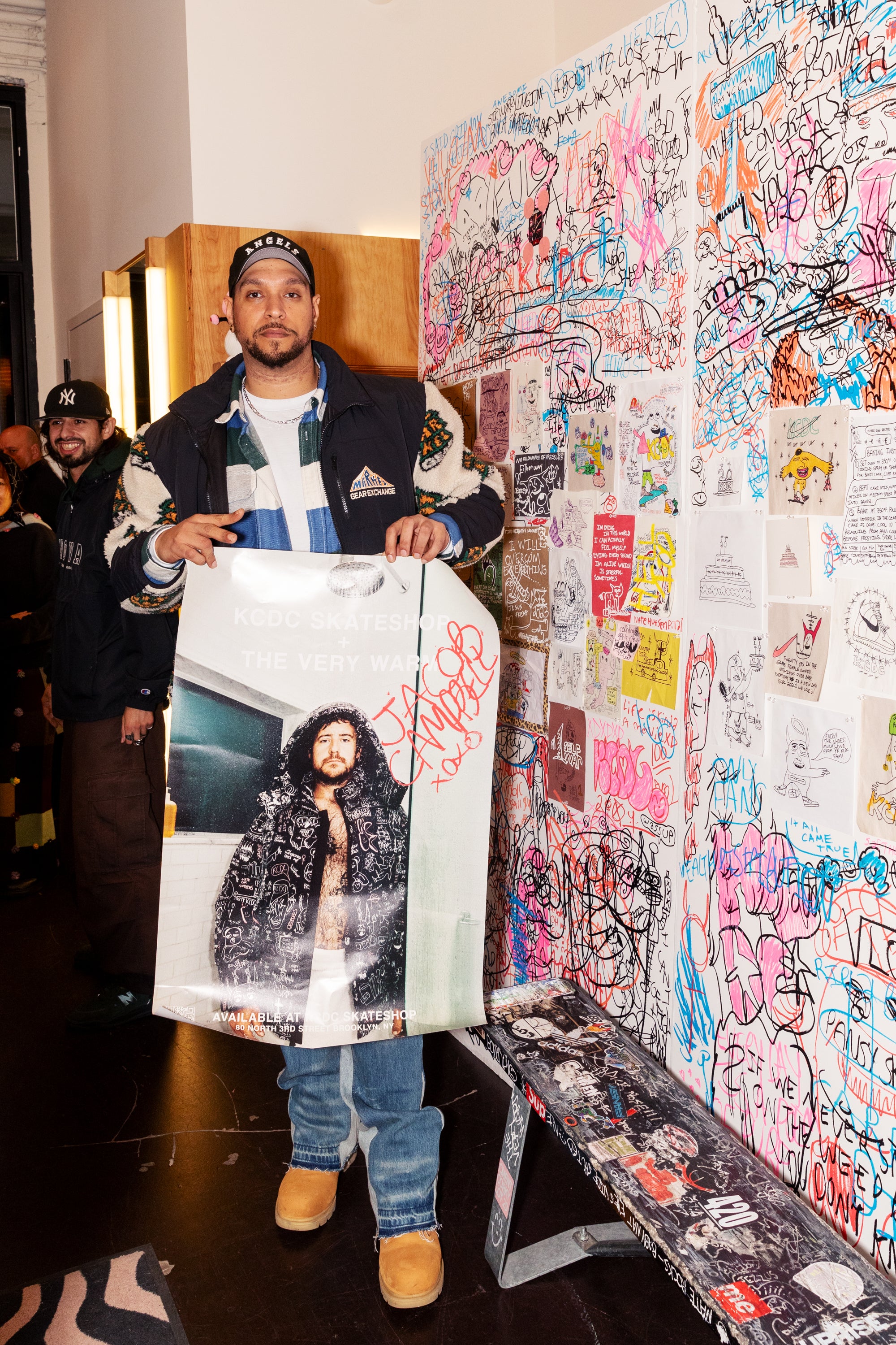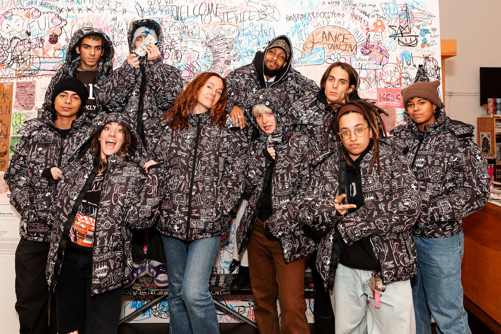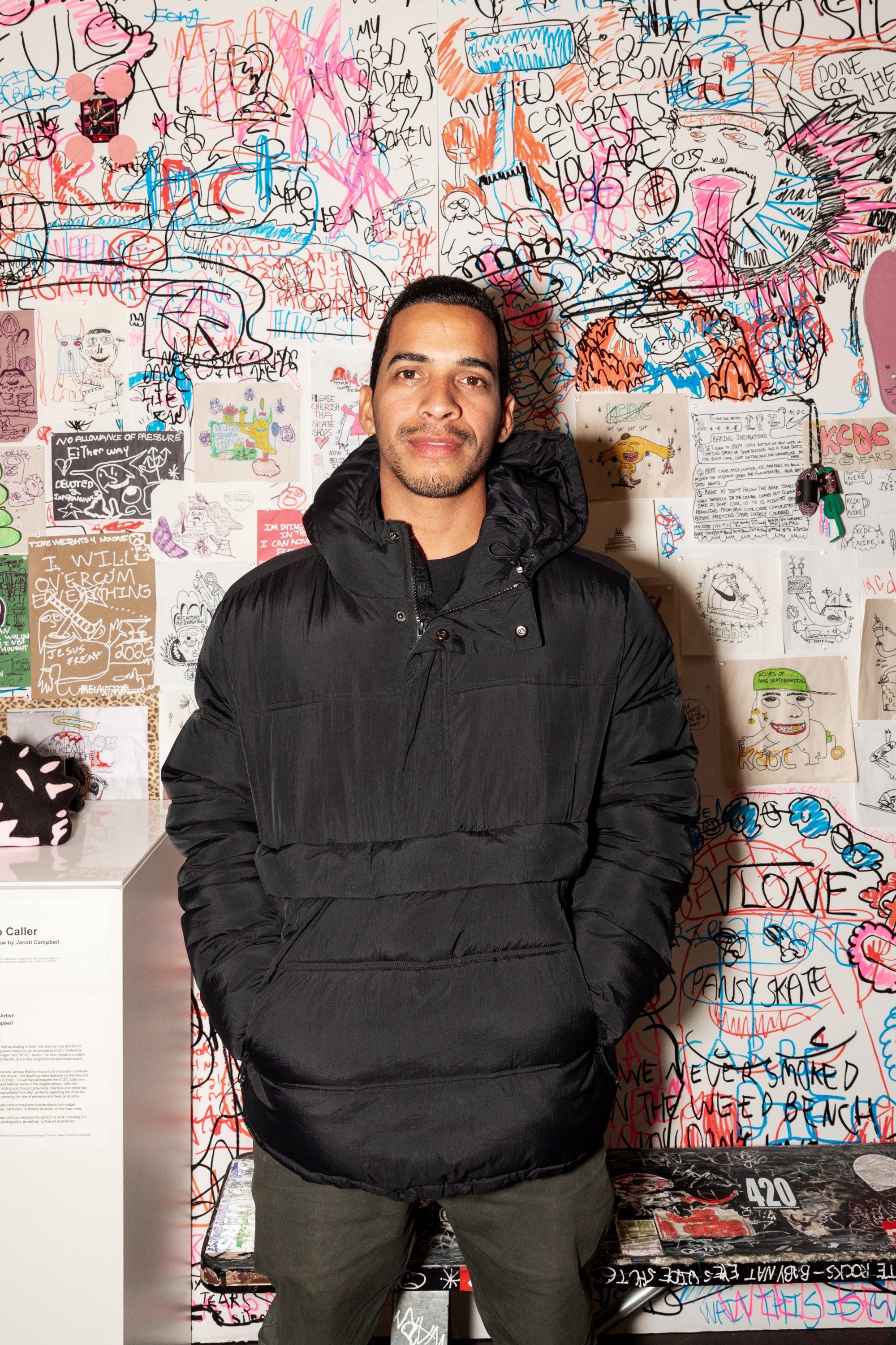Styled with drawings from KCDC team rider Jacob, this jacket is a very warm love note about our favorite skateshop, complete with shoutouts about KCDC employees and personal relics of the shop.