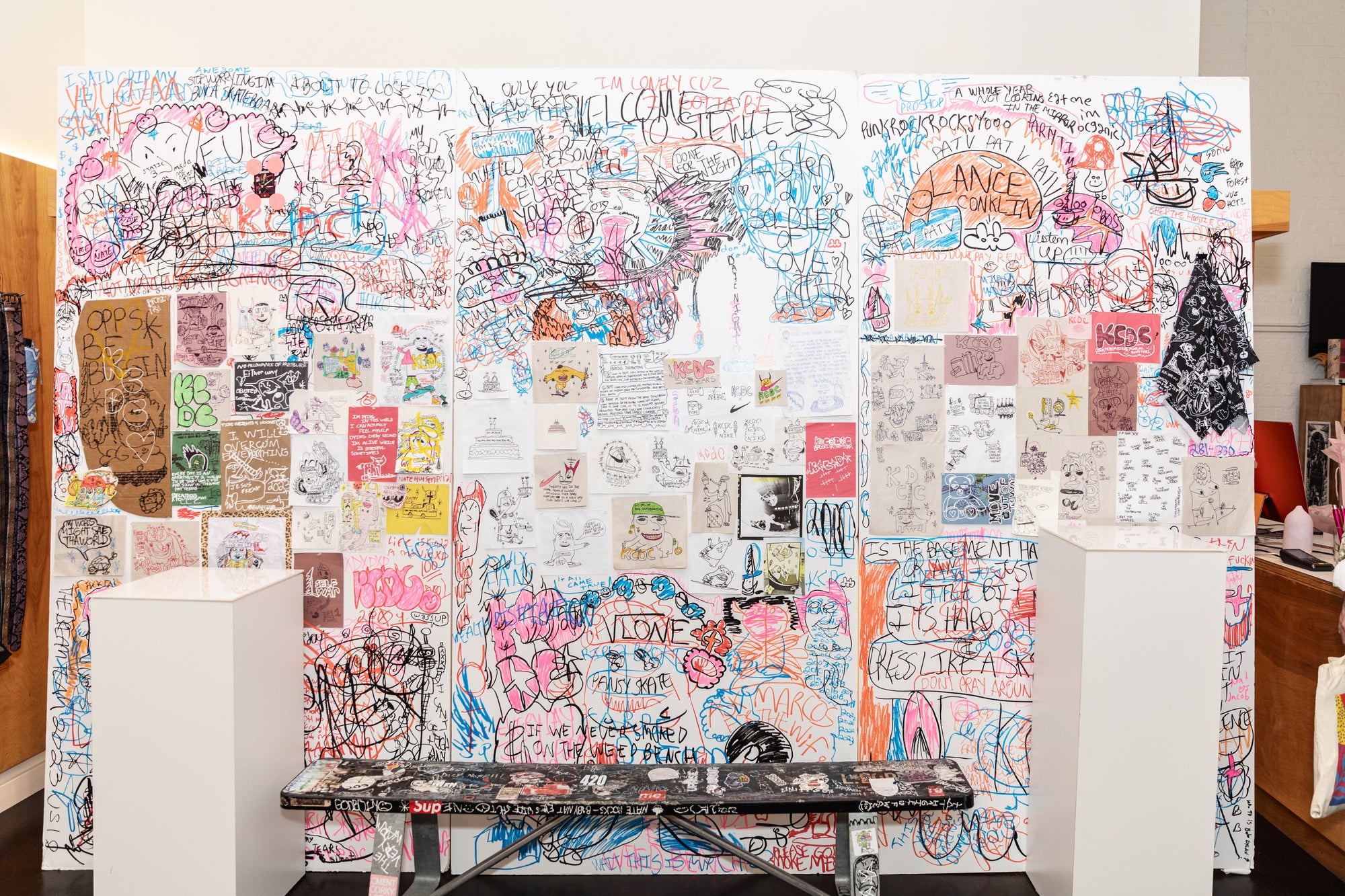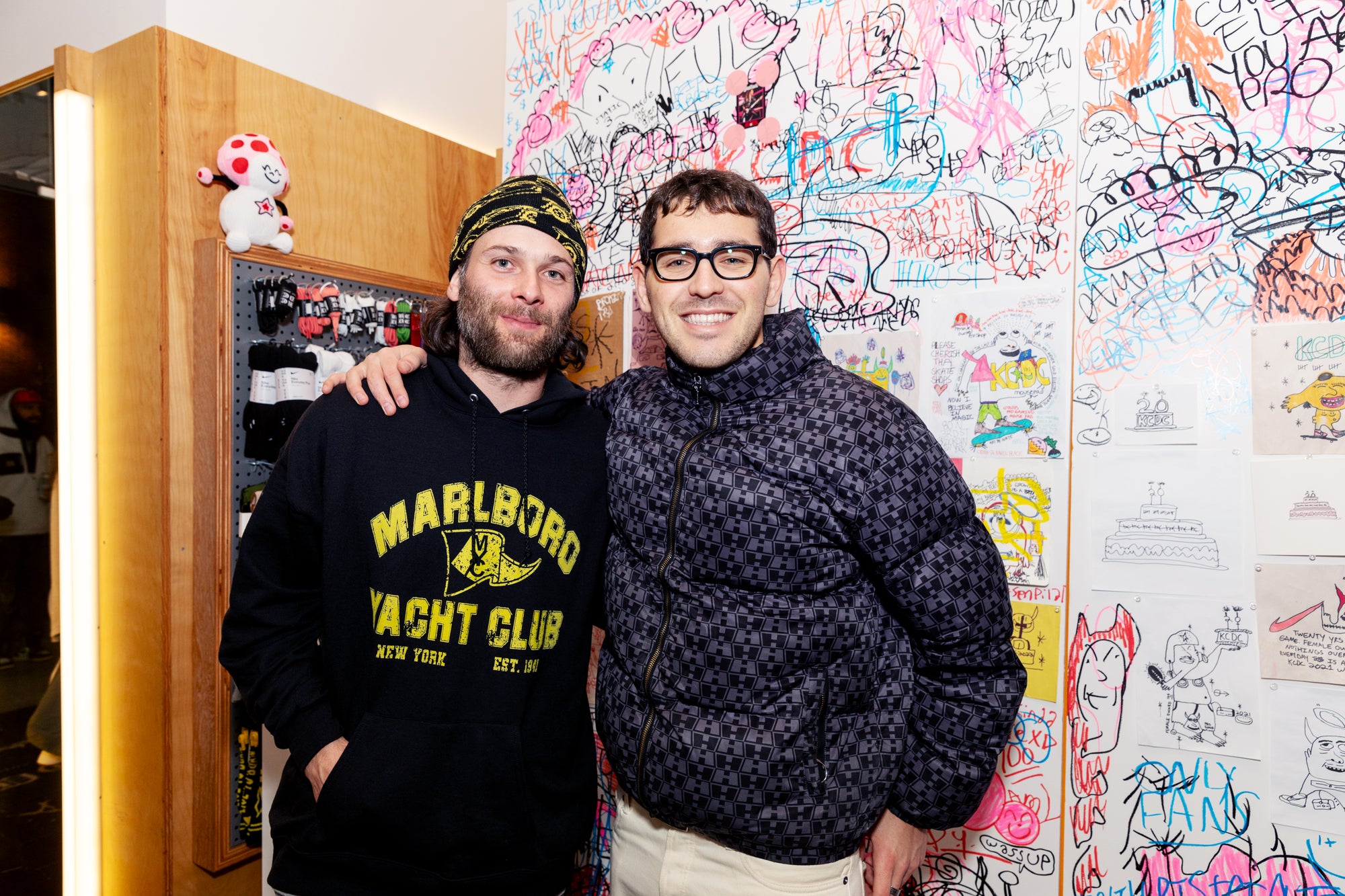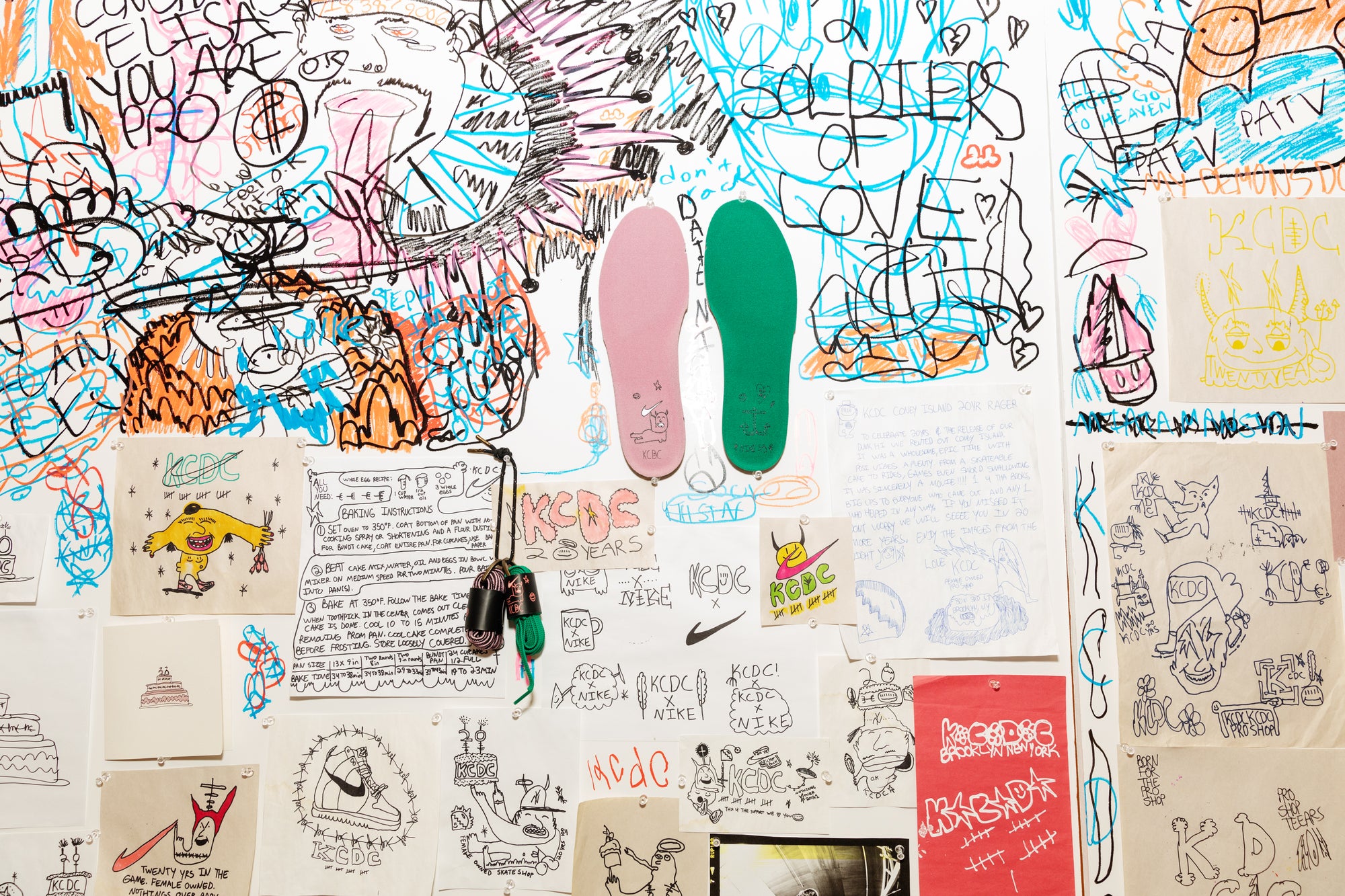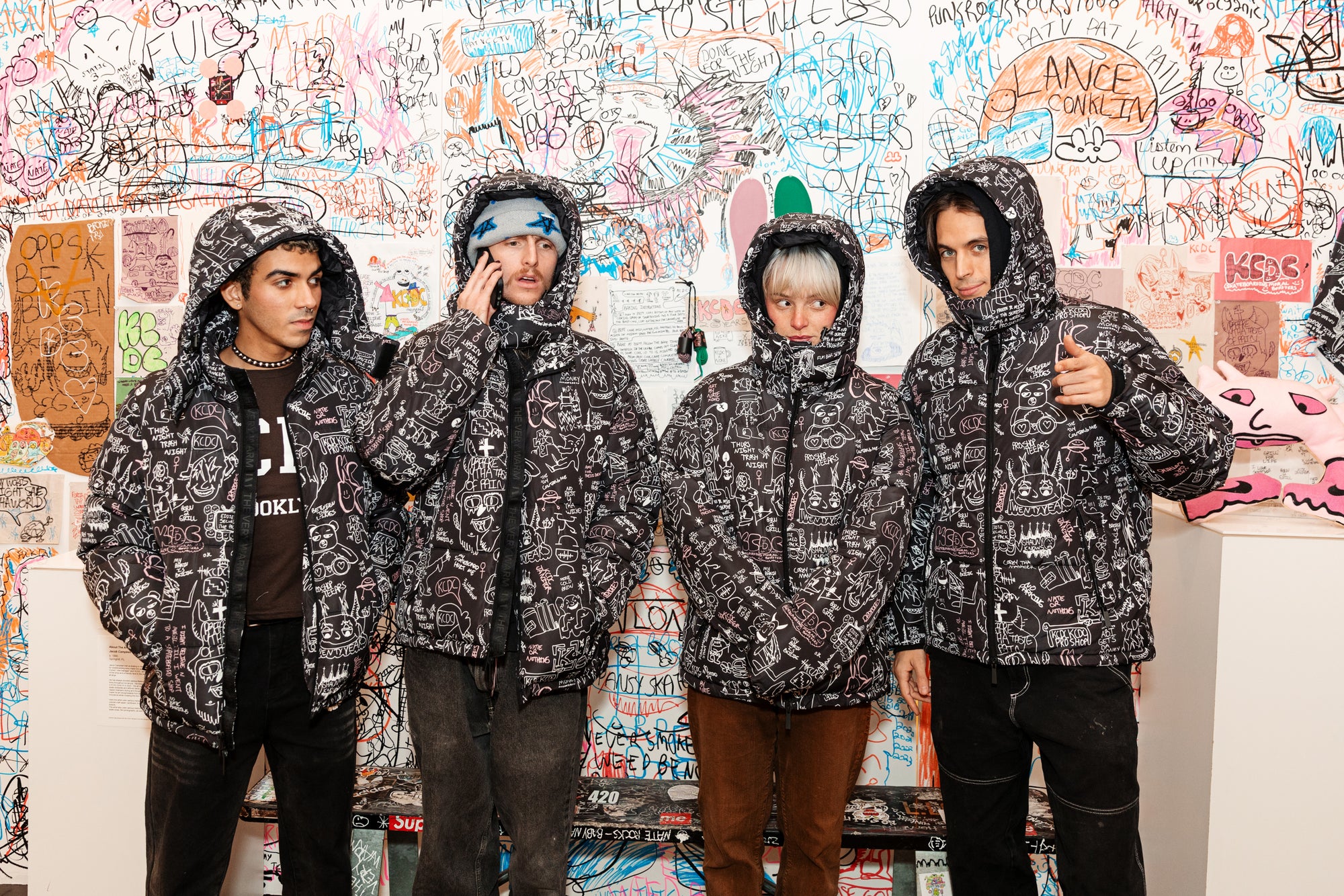 Styled with drawings from KCDC team rider Jacob, this jacket is a very warm love note about our favorite skateshop, complete with shoutouts about KCDC employees and personal relics of the shop.